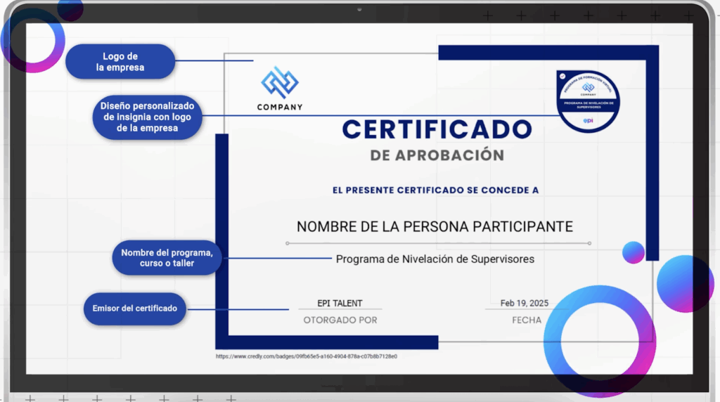 Al concluir cada espacio formativo, recibirá una credencial digital, siempre accesible y verificable, que certifica las habilidades adquiridas. Intégrela a su perfil de LinkedIn, currículo o portafolio digital, fortaleciendo su posicionamiento frente a colegas, empresas y organizaciones del sector como profesional capacitado.